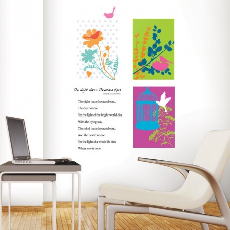 This very modern style wall decals with birds will add color and wildlife in your indoor decoration.