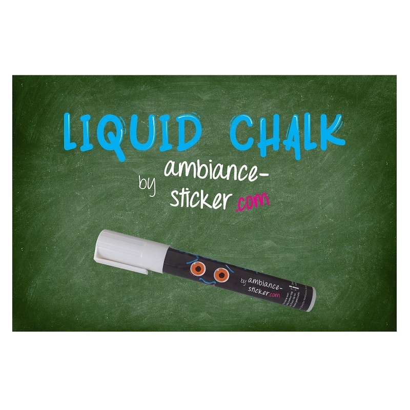 Chalkboard sticker and liquid chalk. Blackboard weight 40g, thickness 0,2 mm. Liquid chalk: you can write on blackboards, whiteboards, windows. Pen thickness 3mm.