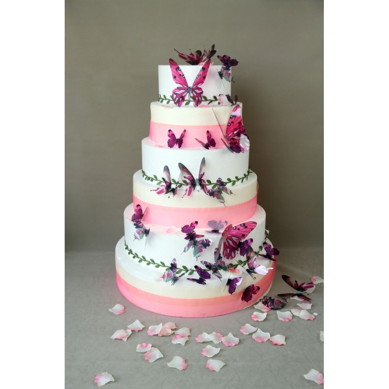 The pack includes 18 plastic butterflies: 2 big butterflies of 12 x 10 cm, 4 butterflies of 10 X 9 cm, 4 butterflies of 8 X 7 cm, and 8 small butterflies of 6 x 5 cm.