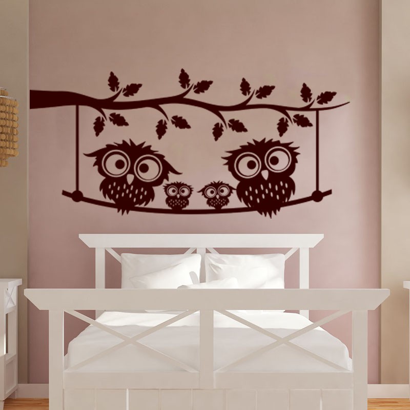 Sticker famille de hiboux qui se ballance pour une déco originale à petit prix !