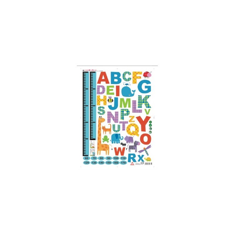 Ce sticker enfant constituant une toise agrémentée de lettres de l'alphabet et de nombreux animaux riches en couleur et bien amusants ! Regardez comment vos enfants grandissent tout en décorant !