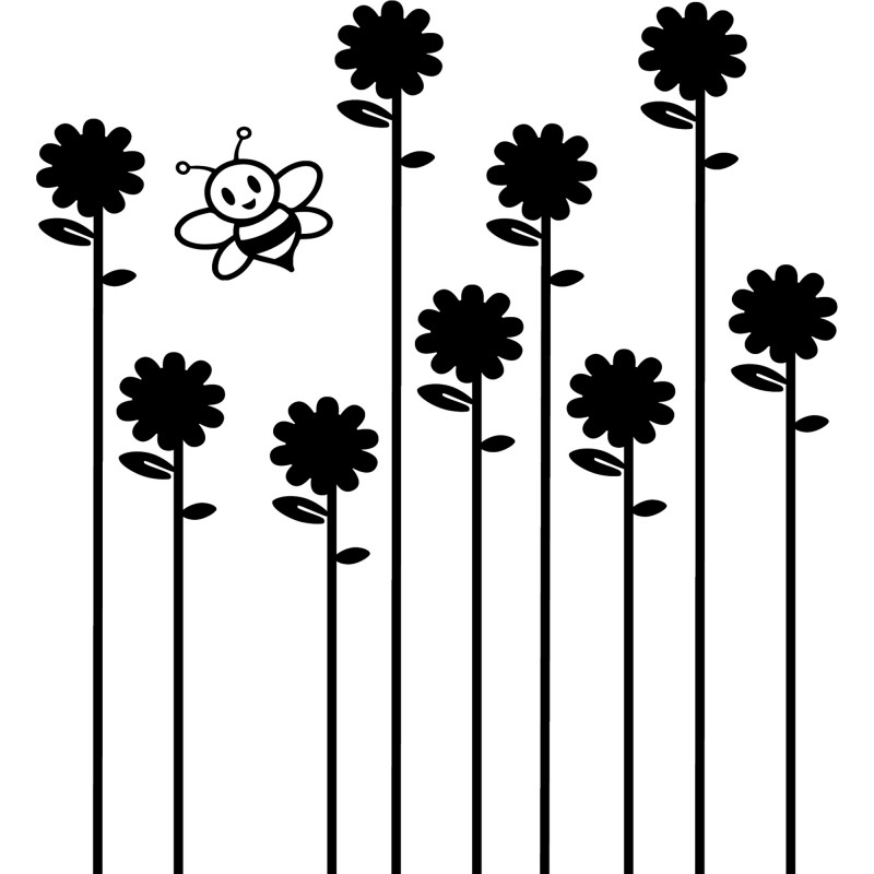 Sticker abeil butinant sur des fleurs : décorez votre logement au gré de vos envies.