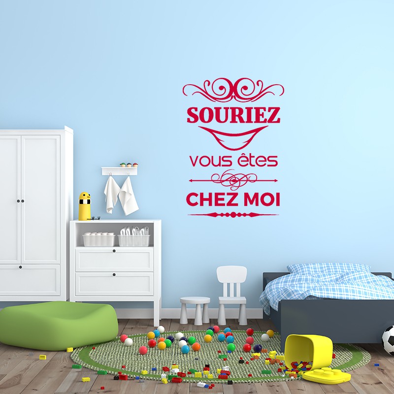 Grâce au Sticker Souriez vous êtes chez moi, vous avez la possibilité de créer l’ambiance dont vous avez envie au sein de votre salon, chambre à coucher, cuisine ou même de votre salle de bains. Nos Sticker Muraux discount disponibles à l’achat conviennent aux envies déco des petits et grands : faites des économies tout en décorant avec nos stickers pas cher !