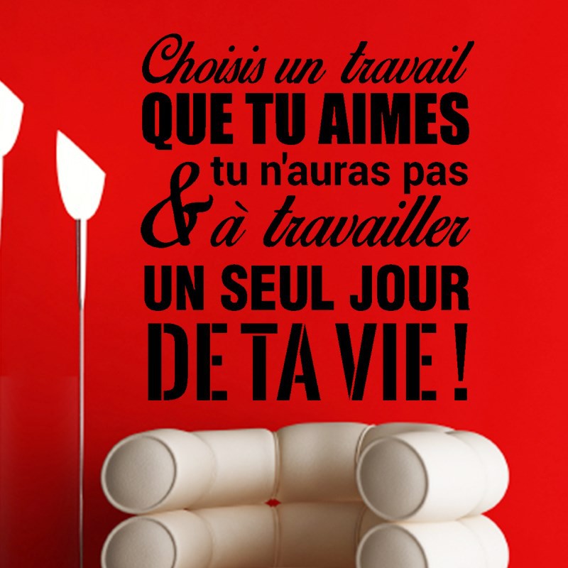 Sticker Choisis un travail que tu aimes : décorez votre logement au gré de vos envies.