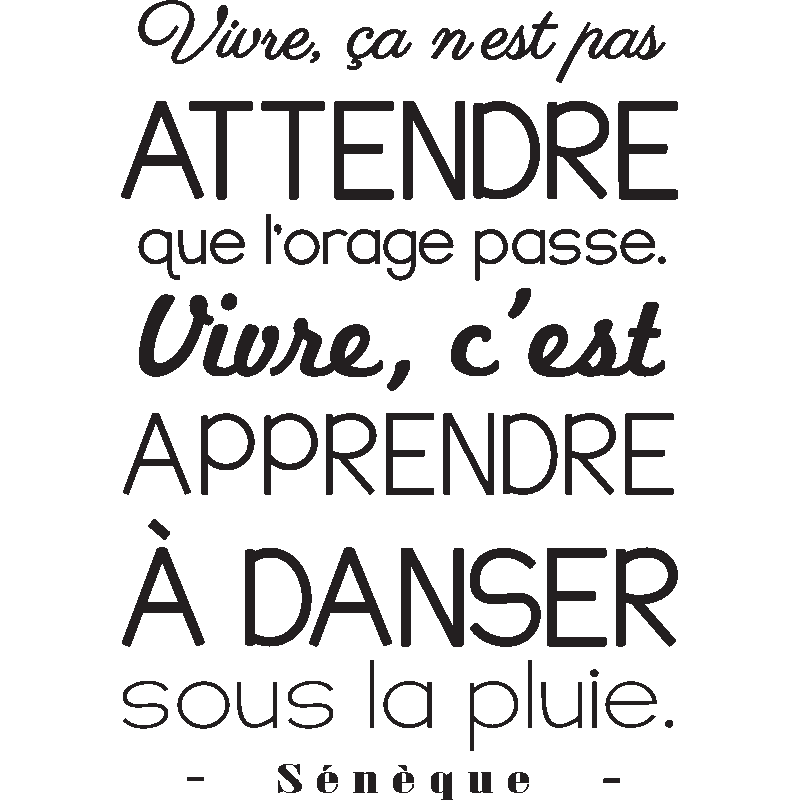 Grâce au Sticker vivre ça n'est pas... Sénèque, vous avez la possibilité de créer l’ambiance dont vous avez envie au sein de votre salon, chambre à coucher, cuisine ou même de votre salle de bains. Nos Stickers citations discount disponibles à l’achat conviennent aux envies déco des petits et grands : faites des économies tout en décorant avec nos stickers pas cher !